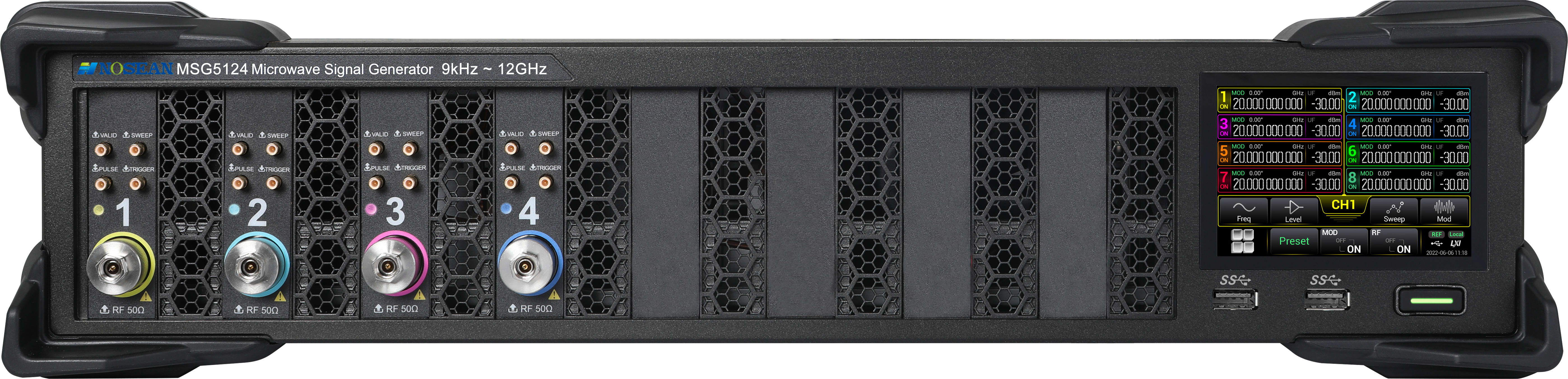 Устройство предназначено для формирования фазокогерентных сигналов, позволяет выполнять сложные сценарии испытаний, в таких областях, как квантовые технологии, генерация радиолокационных сигналов, MIMO и ЭМС.