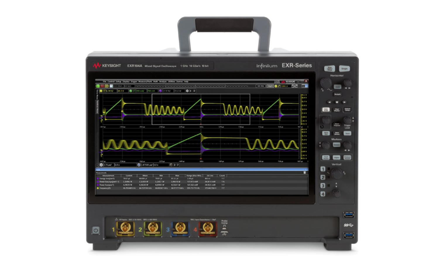 EXR104A использует 10-битный АЦП с возможностью повышения до 16 бит в режиме High-Resolution, что обеспечивает высокую точность при измерениях малых сигналов и фронтов. Осциллограф оснащён 15.6″ сенсорным экраном Full HD, работает под управлением Windows 10 и поддерживает полный набор приложений анализа: протоколы, питание, jitter, compliance-тесты, анализ SI/PI.